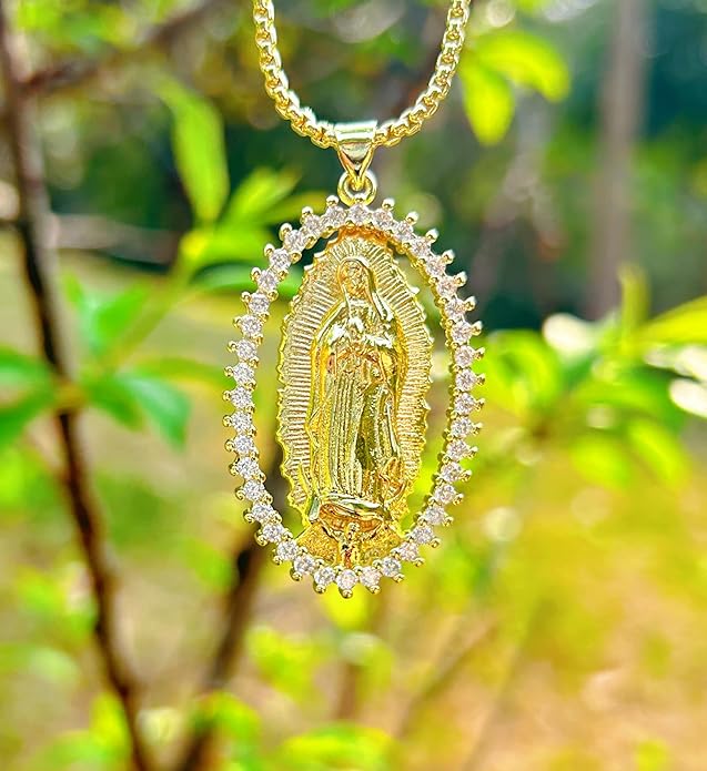 This Virgen de Guadalupe necklace is more than jewelry—it’s a heartfelt symbol of faith, protection, and devotion to the Virgin Mary, the beloved mother of Jesus. Every detail of the 18K gold-plated pendant and 17.7-inch chain shines with exquisite craftsmanship, carrying both elegance and spiritual comfort.